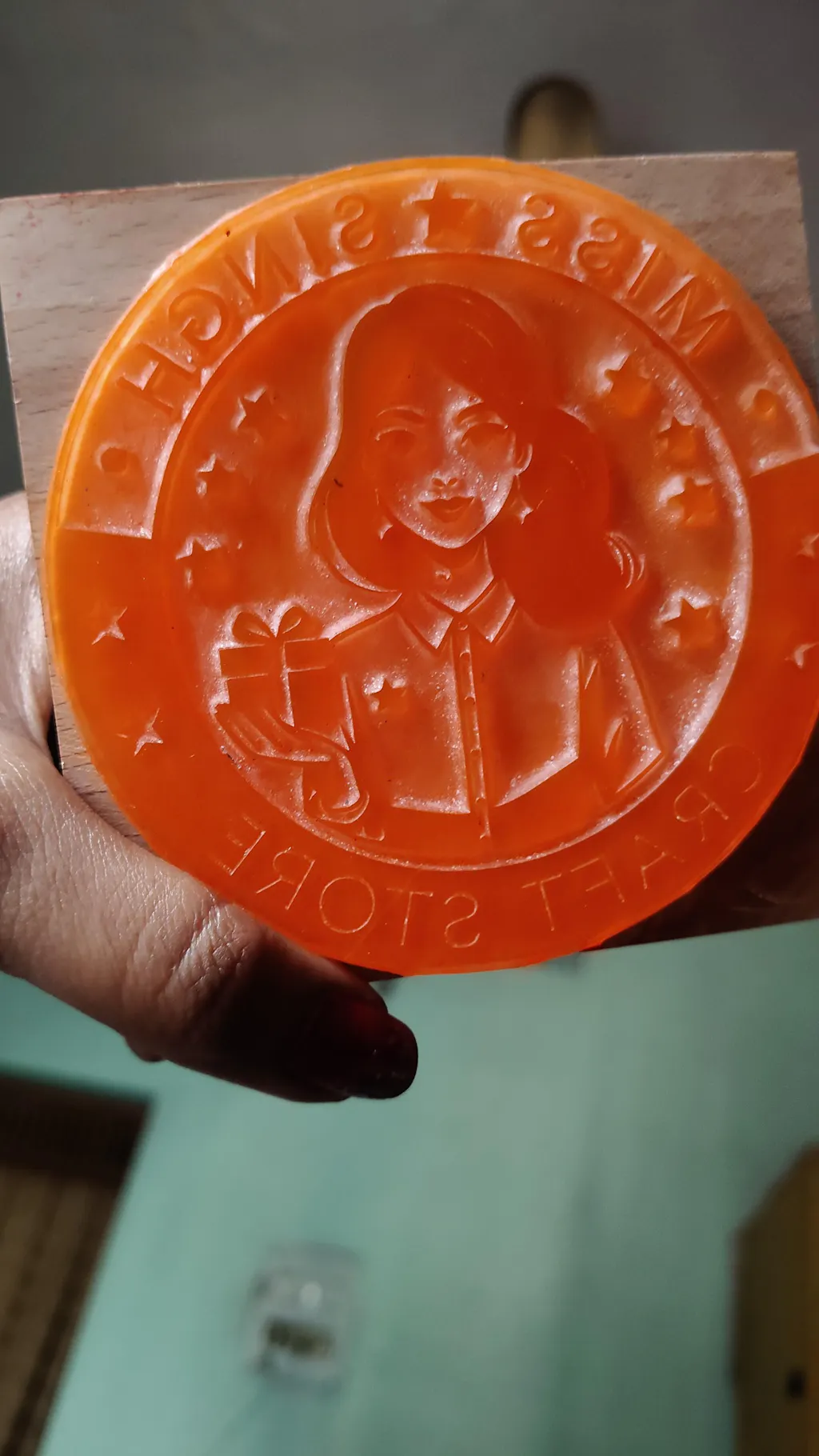 1 Rubber Stamp on a Wooden Mount of Selected Size.